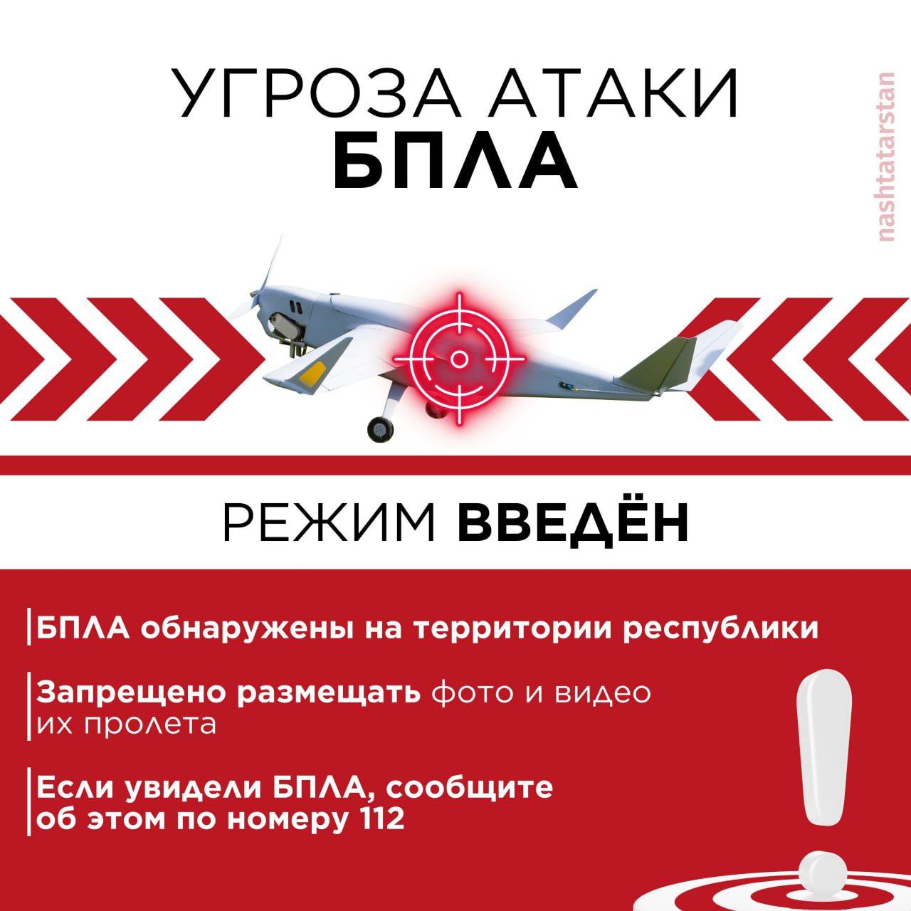 Отменена угроза атаки БПЛА на города Нижнекамск, Елабуга, Набережные челны
