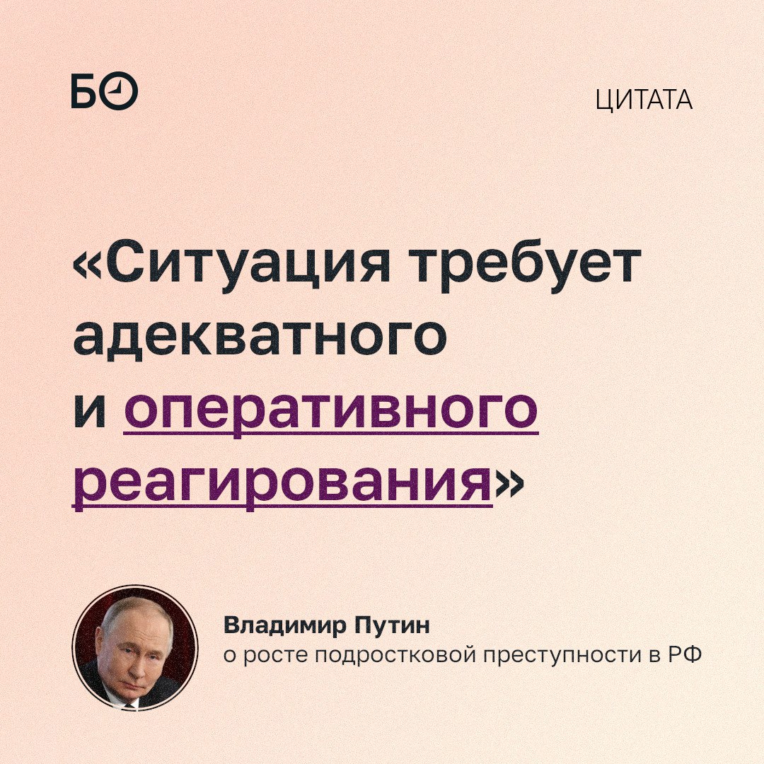 Путин заявил, что по итогам 2025 года в России выросла подростковая преступность. Это произошло впервые за длительное время.