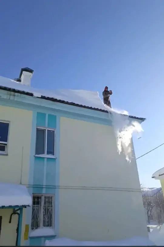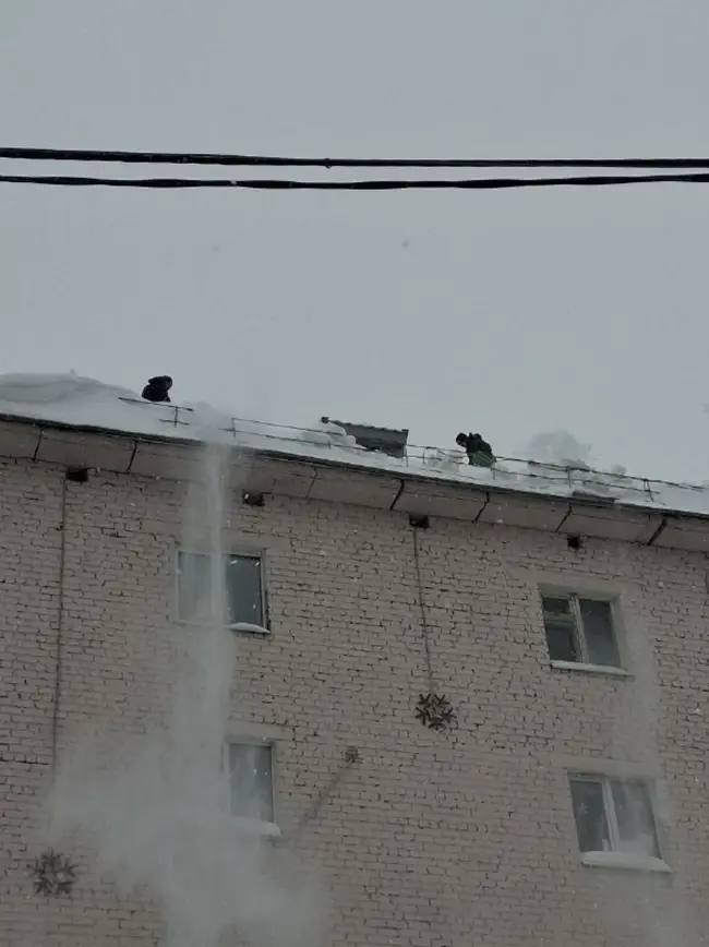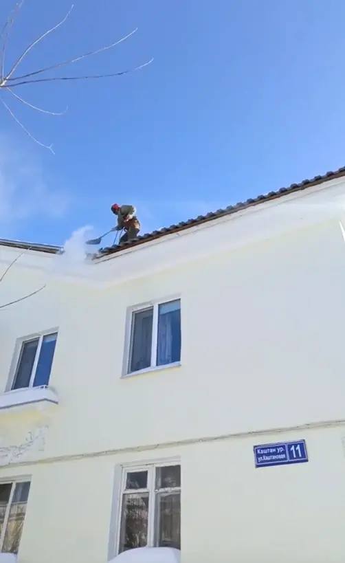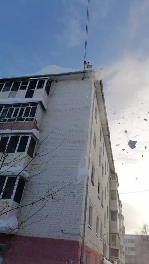 В городе продолжается активная очистка кровель и водостоков от снега и сосулек. Просим соблюдать меры безопасности: