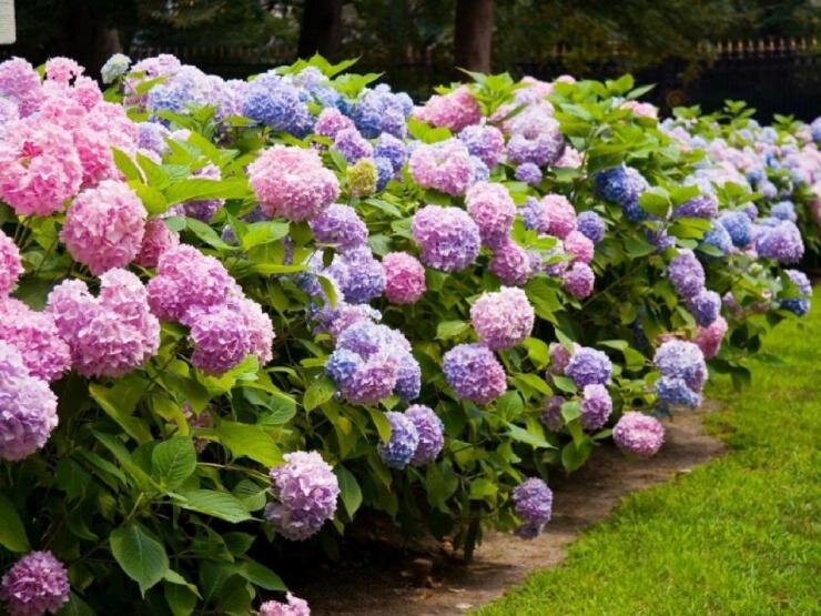 - Кислых почвах — цветки становятся голубыми, синими или фиолетовыми.