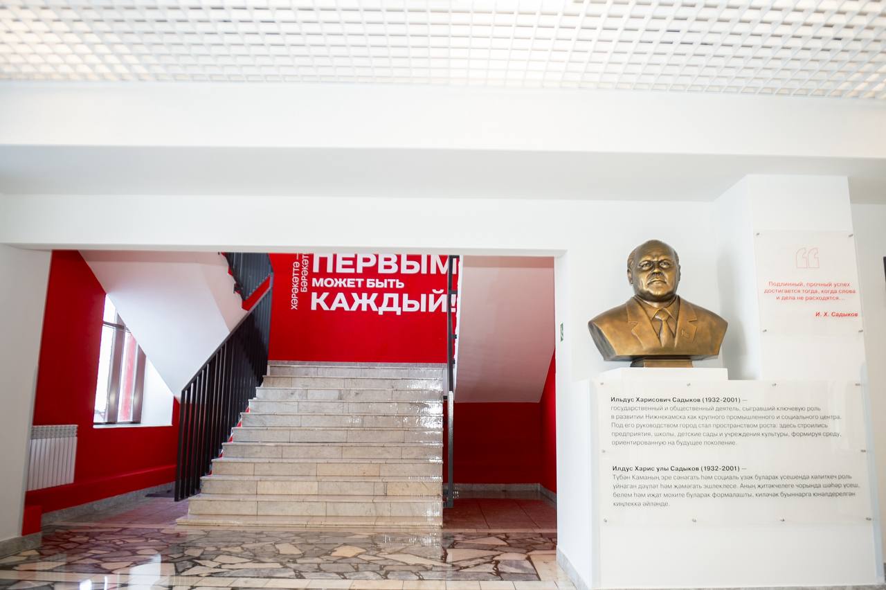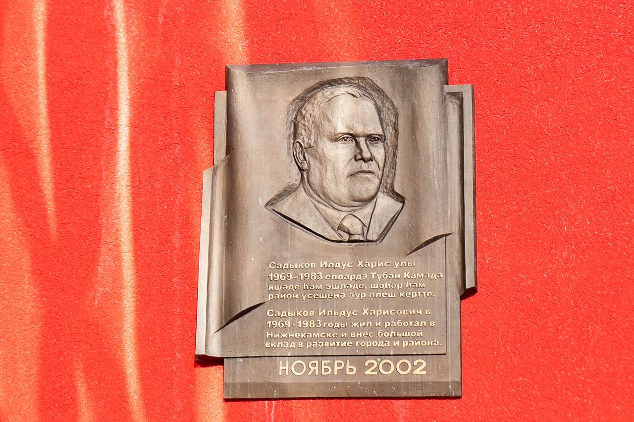 В здании установлен бюст почётного гражданина Нижнекамска Ильдуса Садыкова. На фасаде также появилась памятная табличка с его именем. Это дань уважения человеку, который многое сделал для нашего города.