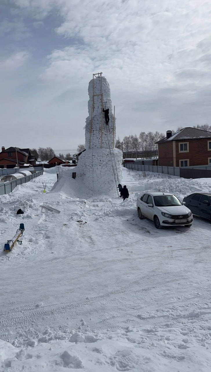 «В 2022 году ребята из Шерегеша построили снеговика высотой 11,7 м. Вот и решил в этом году поставить жирную точку в этой гонке. Сегодня 16-й день стройки, завтра планирую завершить на все 100%. Сейчас достроил — вышло около 14 м плюс тюбетейка 1,5 м. Итого — 15,5 м.