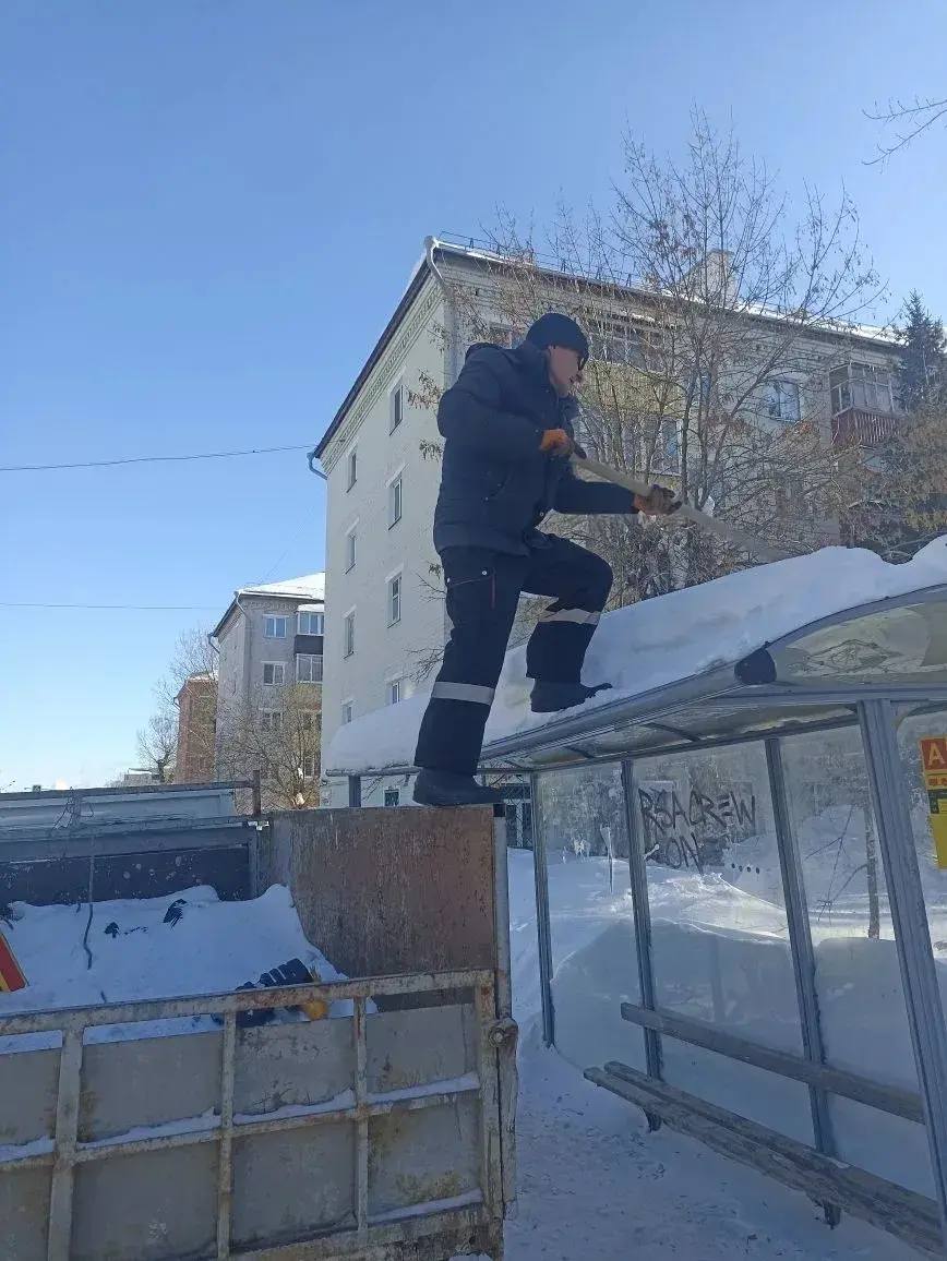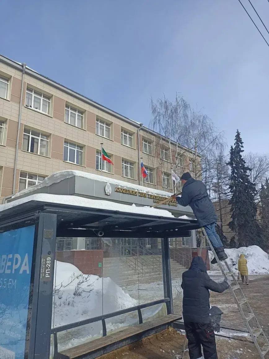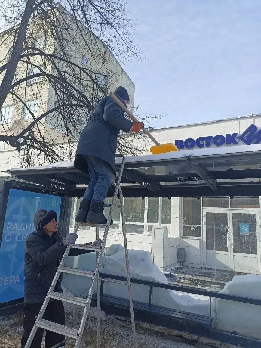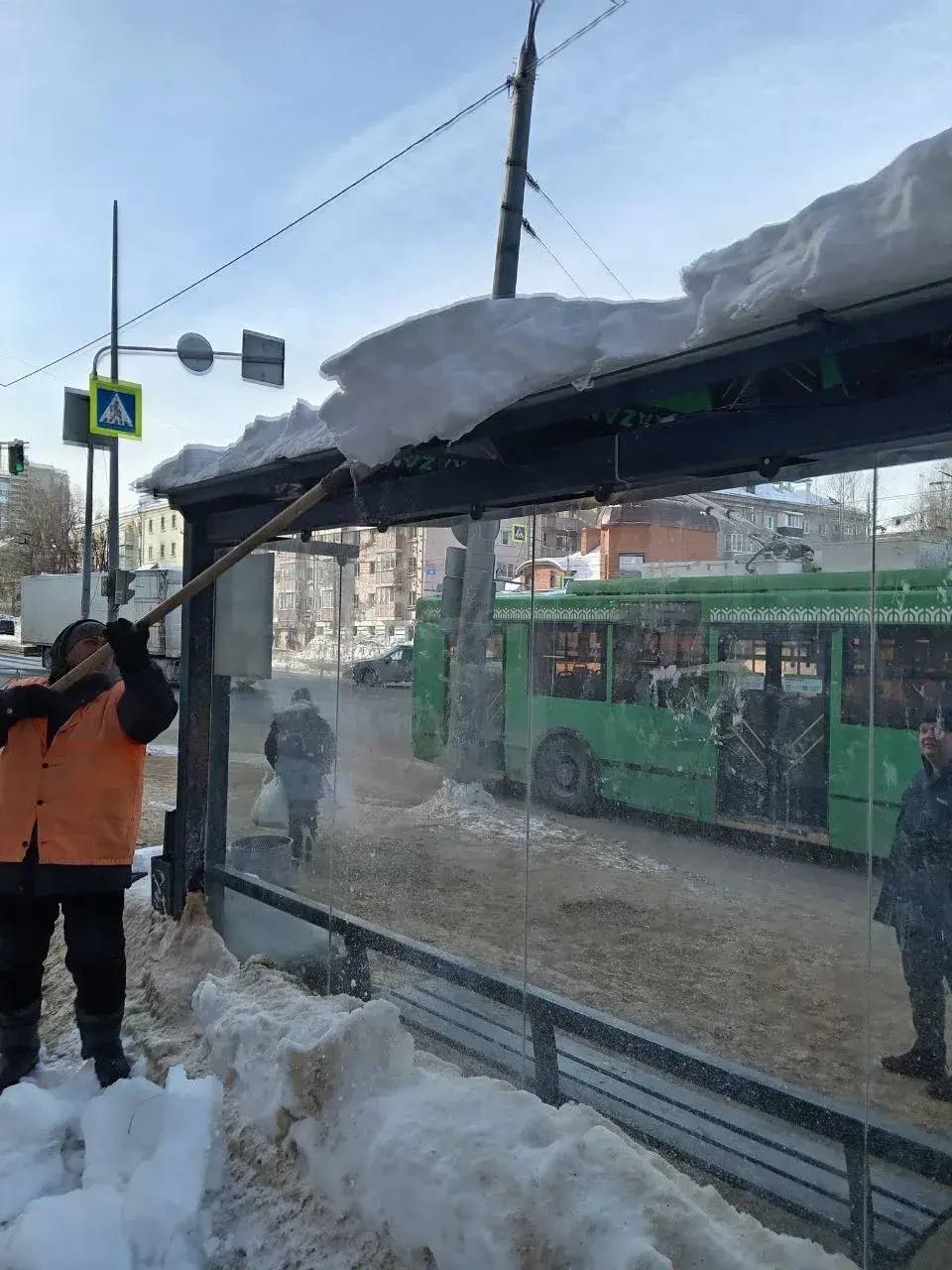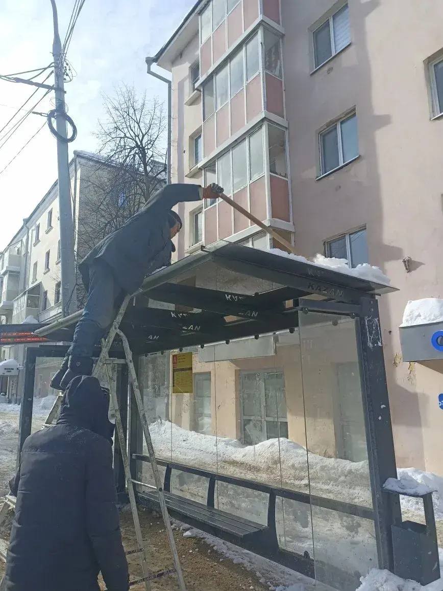 С наступлением потепления снег и наледь на крышах остановочных павильонов могут представлять опасность. Поэтому дорожные службы активно очищают крыши, козырьки и водостоки. Подсмотрим за работой специалистов