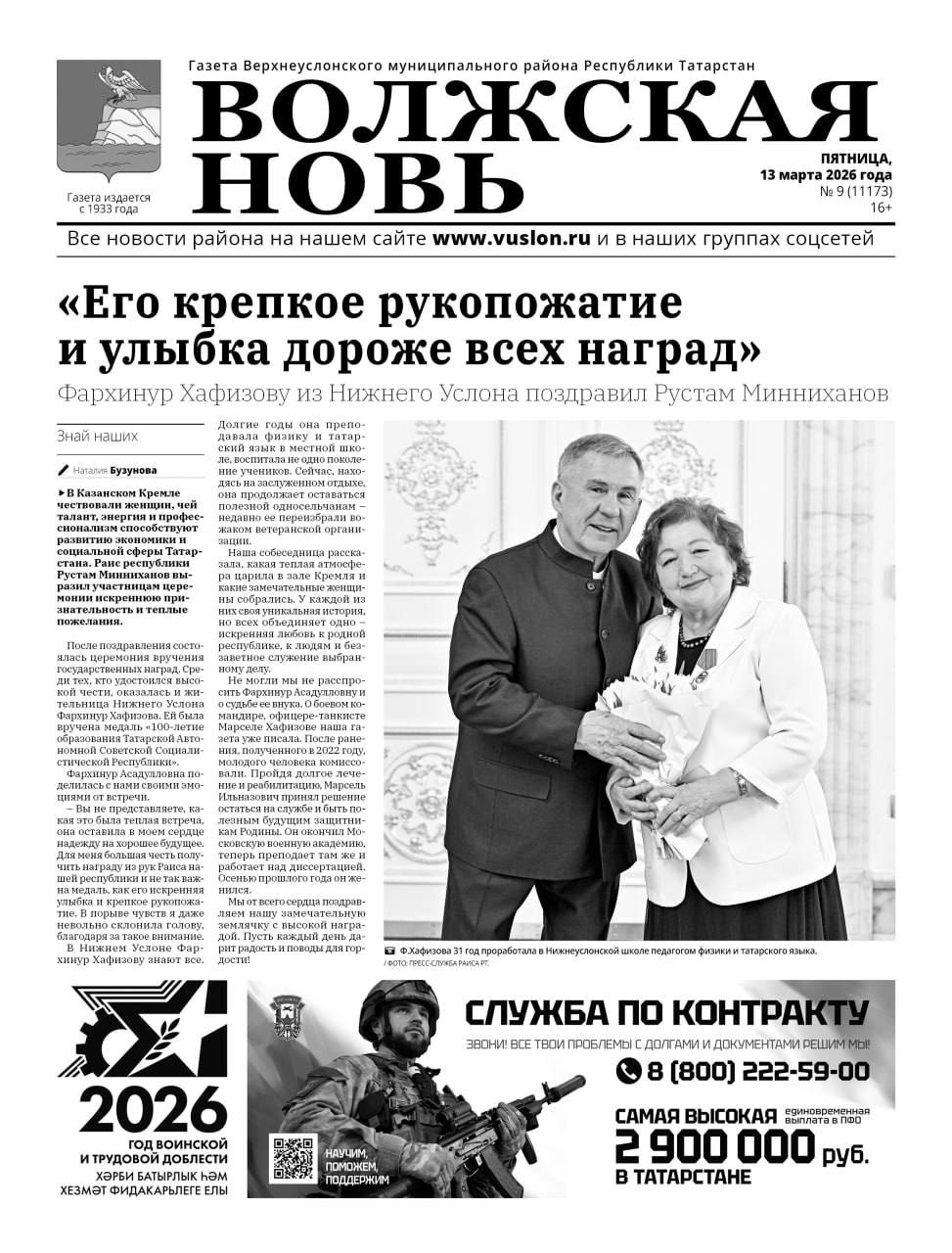 Орденом Почета награжден председатель правления Ак Барс Банка Зуфар Гараев. Награда присуждена за трудовые успехи и многолетнюю добросовестную работу.Медалью «За развитие железных дорог» отмечен начальник участка пути Казанской дистанции...