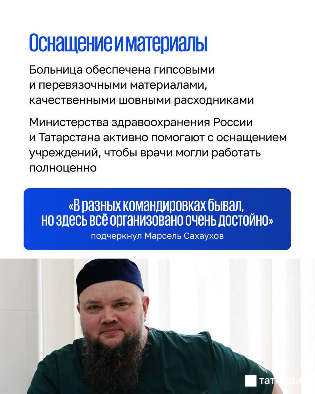 Марсель Сахаухов и коллеги из РТ работают в подшефной больнице, оказывая медицинскую помощь и поддерживая местные отделения. Подробнее – в карточках.