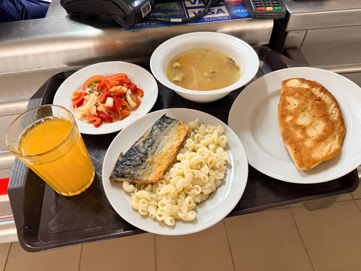 Цена обеда ждёт вас всего лишь на уровне одной чашки капучино в модной кофейне. Рацион состоял из: