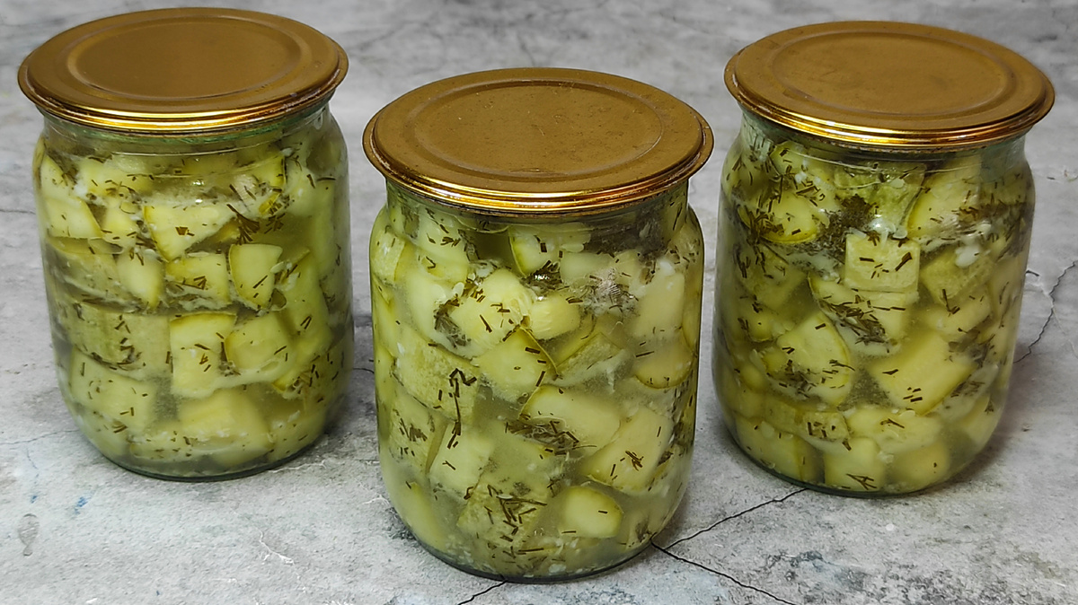 После стерилизации аккуратно извлекают банки, закатывают их и переворачивают, укрывая теплым пледом для остывания. Такая процедура поможет сохранить вкус и хруст ткани кабачков до самой зимы.