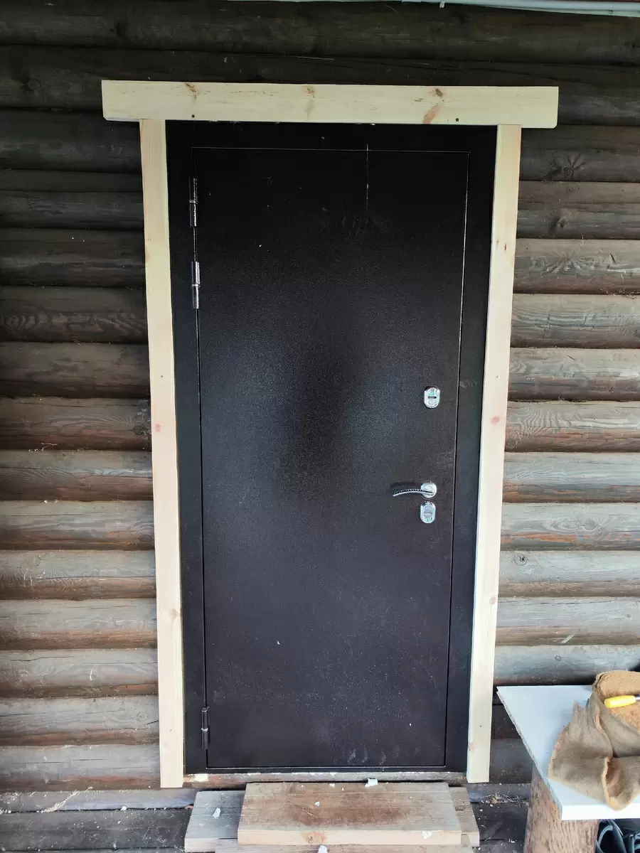 Одним из первых шагов стала установка наличников на двери, чтобы закрыть монтажную пену и предотвратить потери тепла. Работа выполнена достаточно быстро, но без особого творчества. Также на строительной площадке начался уборочный марафон. На втором этаже накопилось немало строительного мусора и пыли.