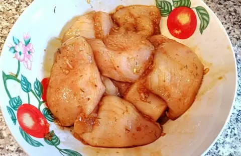 Для начала стоит обратить внимание на куриное филе. Его нарезают на порционные кусочки и маринуют в смеси из соевого соуса, измельченного чеснока, специальной приправы для курицы, немного растительного масла и соли. Такой маринад придаст блюду особую пикантность и насыщенный вкус.