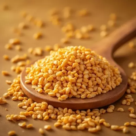 Булгур – цельнозерновая крупа, отличающаяся тем, что ее зерна предварительно пропариваются, что упрощает процесс приготовления и улучшает усвоение. Эта крупа богата витаминами группы B, магнием, фосфором и клетчаткой.