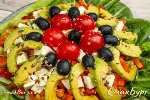 Этот красочный греческий салат в новом стиле не только удивит своим ярким и аппетитным видом, но и порадует разнообразием вкусов. Полезные овощи, авокадо и нежный сыр создают гармоничное сочетание, которое станет отличным дополнением к праздничному столу и легким перекусом в будние дни. Готовьте и наслаждайтесь!