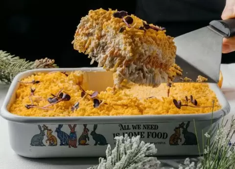 Аркадий Новиков также не отстает. Рестораны Novikov Moscow и Sirena радуют клиентов эксклюзивными новогодними предложениями. В Novikov шеф Алексей Арбузов предлагает свою версию оливье с лососем (1 290 руб.) и утку по-пекински с хрустящей корочкой (2 790 руб.). А для сладкоежек – императорский мильфей весом около 4 килограммов за 15 600 руб.! При самостоятельном вывозе блюд предоставляется 20% скидка.