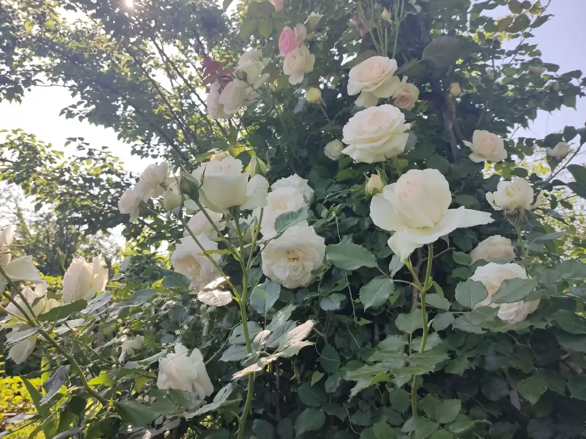 Несмотря на изменения, три любимых розы всё же остались на месте — Pierre de Ronsard, Palais Royal и Pomponella. Эти три «королевы» составили новую компанию в обновлённом саду.