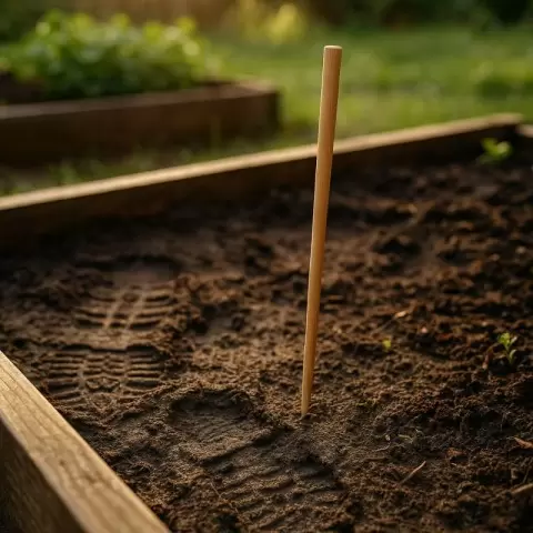 - На влажной грядке (после дождя или полива) вдавить шпажку вертикально;