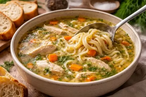 Холод за окном напоминает о простых радостях: тепло на плите и ароматный обед, который собирает семью за столом. Именно в такие моменты куриный суп с домашней лапшой становится более чем блюдом — спокойной находкой на вечер.