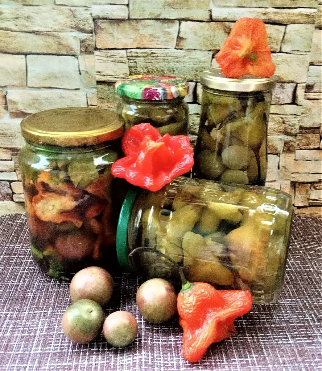 В результате такая заготовка прекрасно хранится как в обычной кладовке, так и в холодильнике. Хотя она может не подойти всем, зимой, когда на улице холодно, приятно открыть баночку и насладиться пикантным вкусом горячих блюд, добавив в них маринованные томаты или перчик.