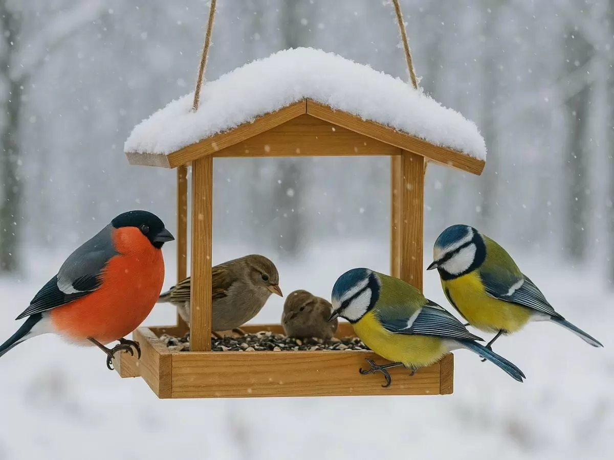- Близость кормушки к окнам и хищным животным может создать опасность для пернатых.