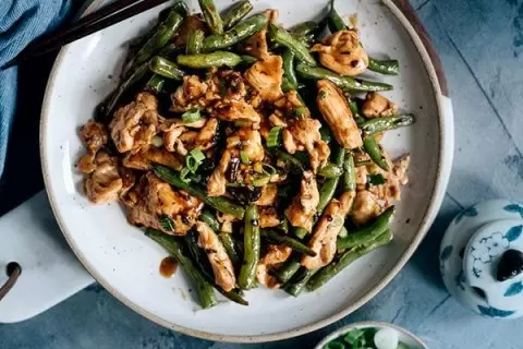 Курица с зеленой фасолью в соусе из черных бобов — это не просто блюдо, а настоящий гастрономический опыт, который поможет разнообразить ваш обычный ужин. Нежные куски курицы, обжаренные до золотистой корочки, в сочетании с хрустящей фасолью и насыщенным соусом подарят вам незабываемый вкус прямо из китайского ресторана.