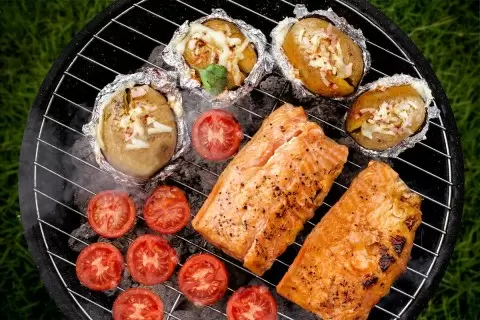 Шаг 2: Пока картошка готовится, приправить рыбу солью, перцем и паприкой. Затем, когда картофель станет почти готов, поместить рыбу на гриль и запекать ее в течение 10-15 минут, переворачивая, чтобы она не пересохла.