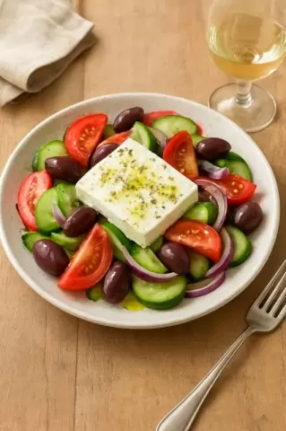 Греческий салат, или horiatiki, как его называют местные жители, представляет собой гастрономический символ солнечной Греции. Это блюдо, родившееся в середине XX века, является гармонией свежести и качественных ингредиентов. Сначала его готовили простые крестьяне, используя всё, что было под рукой: зрелые помидоры, хрустящие огурцы, сладкий лук и ароматные маслины с сыром фета, щедро политыми оливковым маслом.