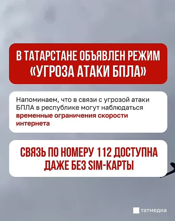 «Угроза атаки БПЛА» - если беспилотники обнаружены на территории Татарстана.