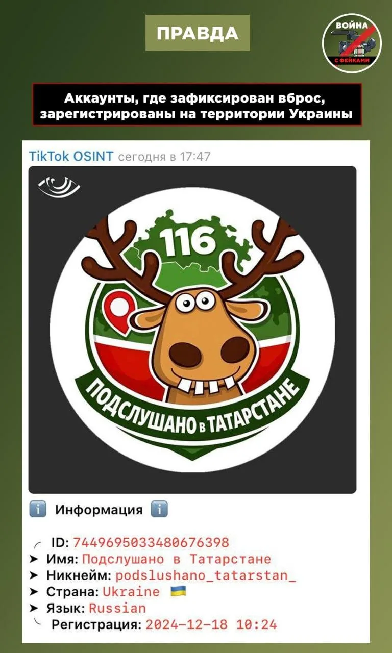 Популяризация фейка происходит сразу на трех площадках, локализованных в Татарстане. При этом сами аккаунты зарегистрированы на территории Украины и специализируются на однотипных подделках. Контент в них дублируется, а фейки соседствуют с реальными новостями для создания иллюзии достоверности.