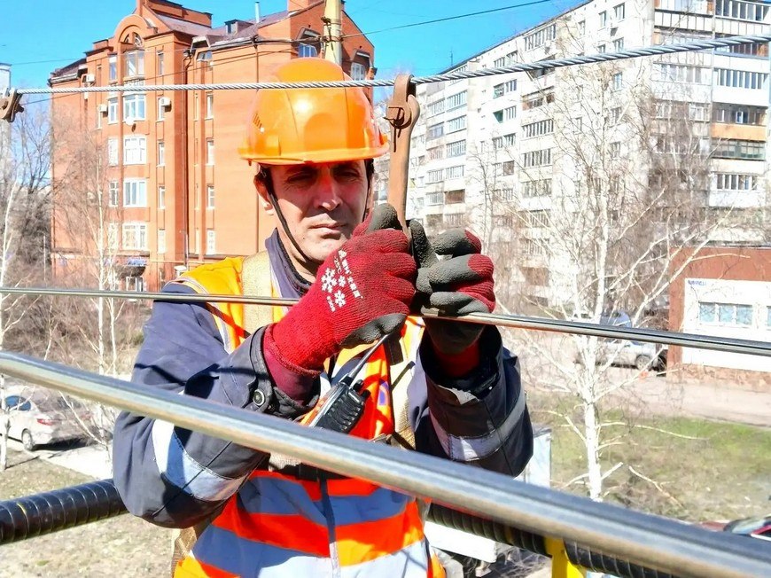 Специалисты службы энергохозяйства наземного транспорта ежедневно восстанавливают кабельные линии и контактную сеть.
