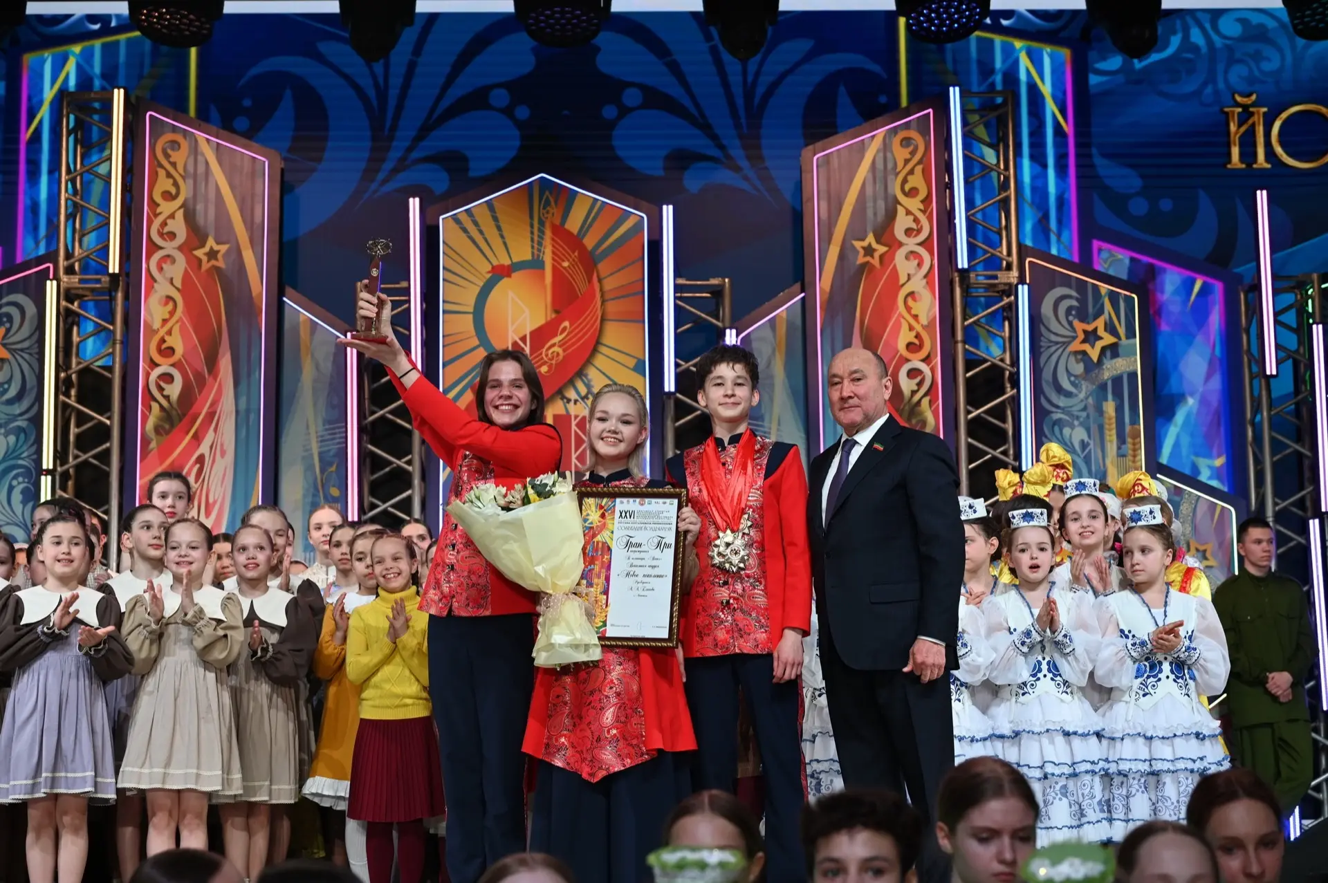 От имени Раиса Республики Татарстан Рустама Минниханова, парламента и Правительства республики участников фестиваля поздравил исполняющий обязанности Председателя Государственного Совета Марат Ахметов. Он вручил главную награду победителям – гран-при фестиваля.