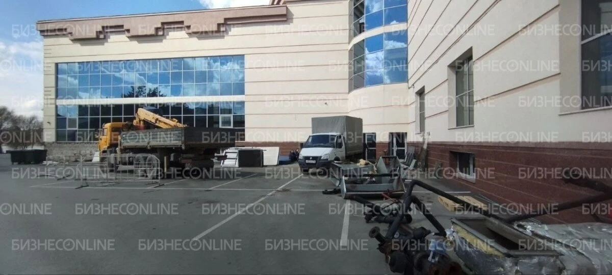Судя по кадрам, на участке начались работы по демонтажу. На парковке и прилегающей территории скопились элементы конструкций и строительные материалы, стоит спецтехника. Также можно заметить, что уже начали разбирать фасад здания.