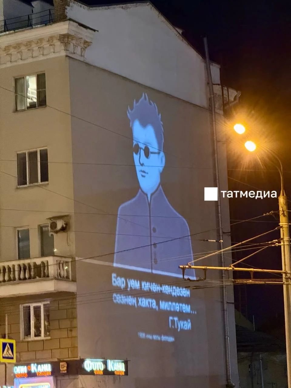 На улице Татарстана появилась световая проекция с изображением Габдуллы Тукая
