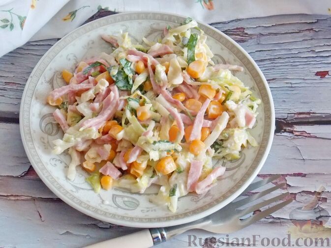 1. Салат из капусты с ветчиной и кукурузой