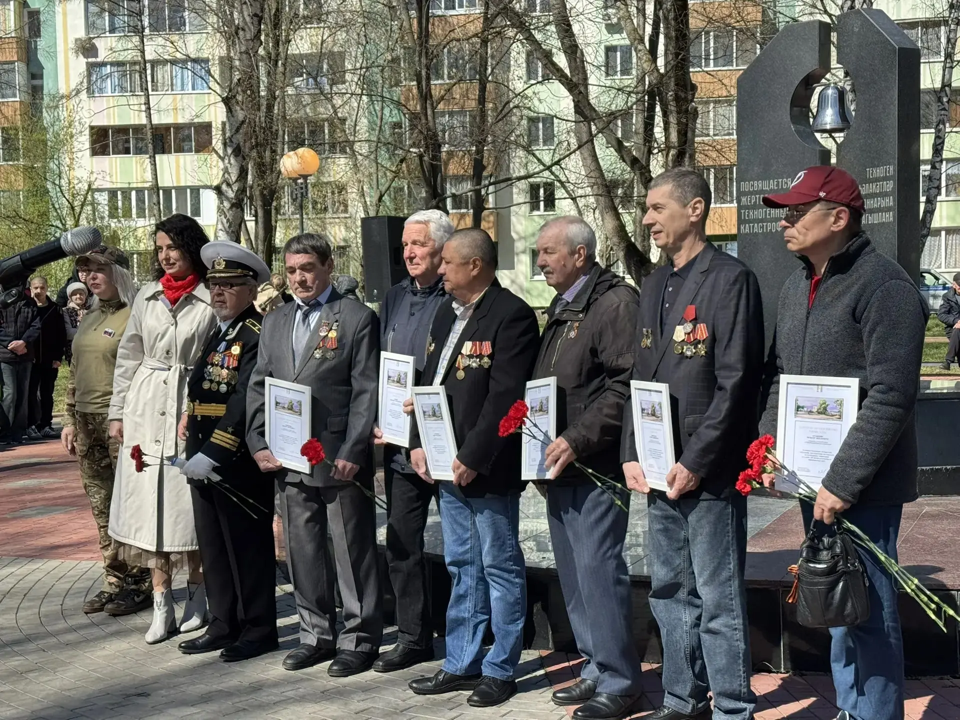 У памятника жертвам техногенных катастроф прошёл памятный митинг, посвященный 40-летию аварии на Чернобыльской АЭС. Ликвидаторам вручили благодарственные письма от имени глава Нижнекамского района, мэра города Радмира Беляева