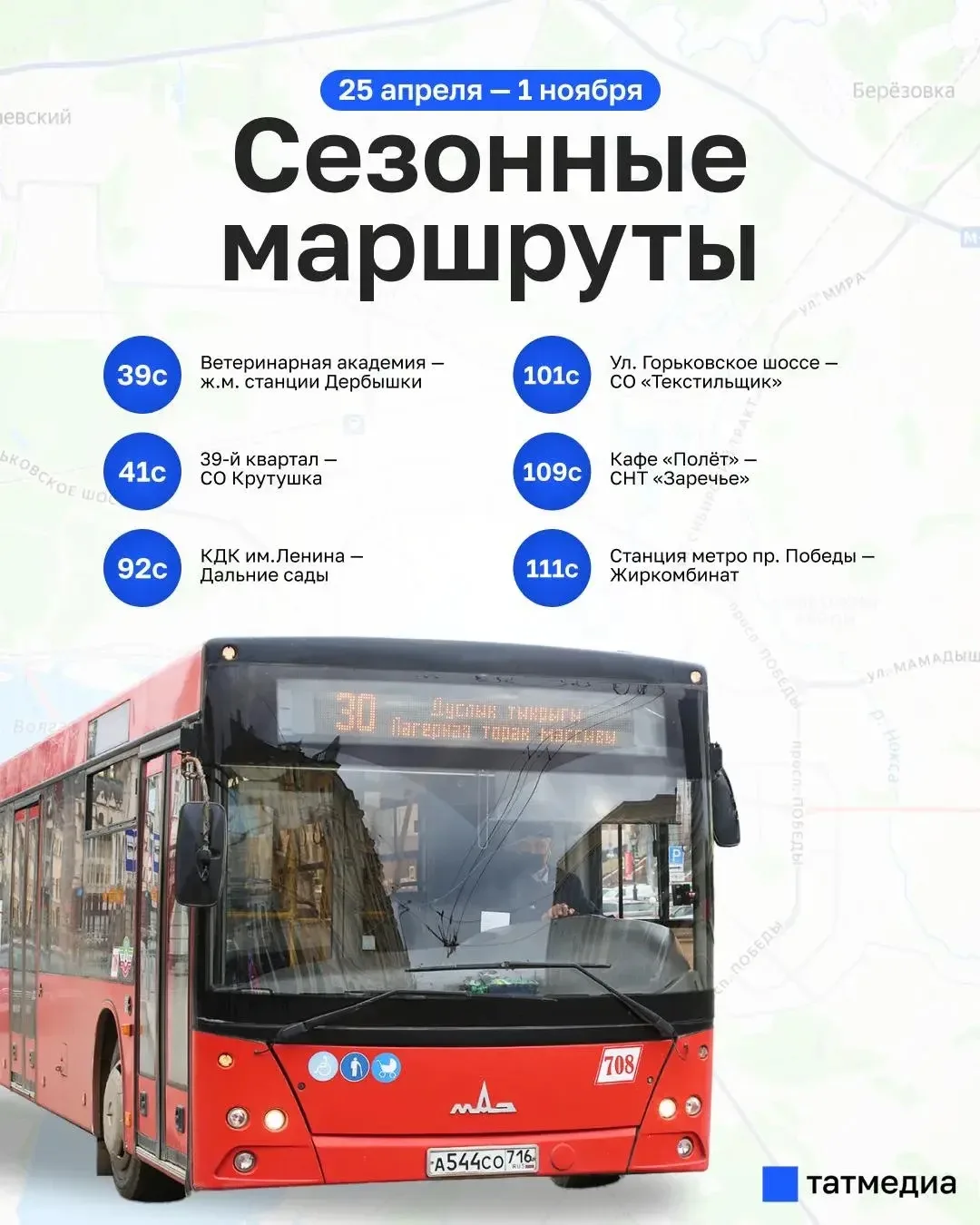 В Казани запустили шесть сезонных автобусных маршрутов