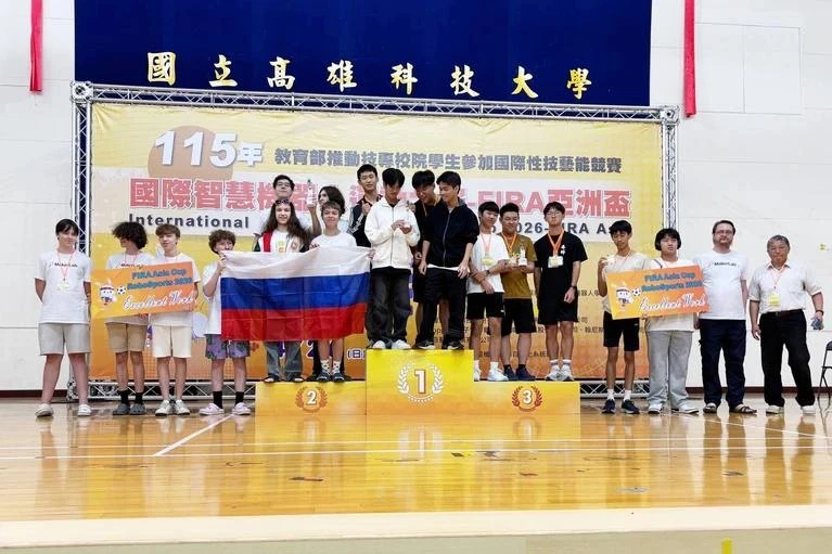 Сборная России заняла второе место на международном чемпионате по робототехнике FIRA Asia-2026 в Тайване. В составе команды выступили ученики школы «СОлНЦЕ» Иван Поликарпов, Святослав Душин и Мурад Мингазов, а также Карим Вафин из лицея №131.