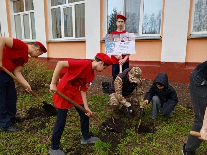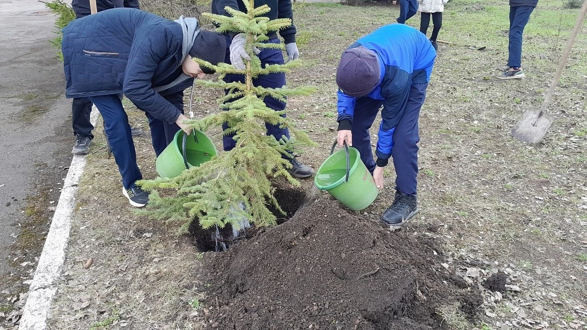 Так, ученики СОШ №1 посадили шесть саженцев сирени. Живые памятники посвятили выпускникам школы, которые погибли, выполняя воинский долг в зоне СВО.