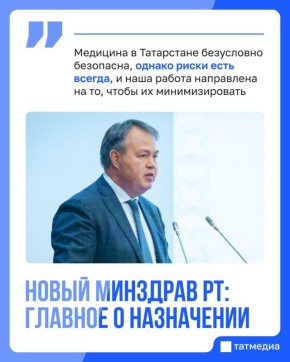 Назначен новый министр здравоохранения Татарстана. О том, кто занял должность и какие цели стоят перед новым главой - в карточках.@tatmediaofficial | Все каналы Татмедиа™ 1-й новостной MAX-канал Татарстана -...