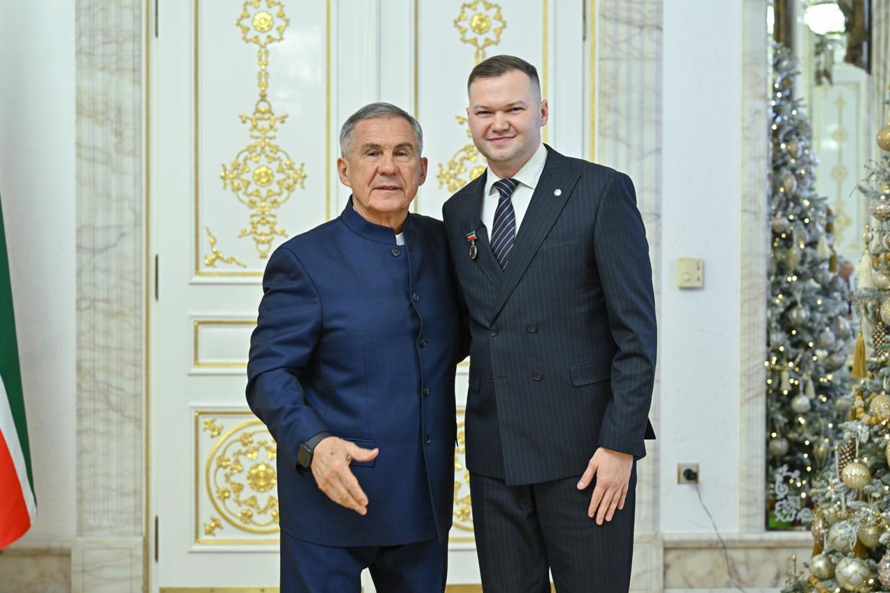 Раис РТ Рустам Минниханов присвоил звание «Заслуженный работник физической культуры Республики Татарстан» заместителю министра спорта РТ Алмазу Хусаинову