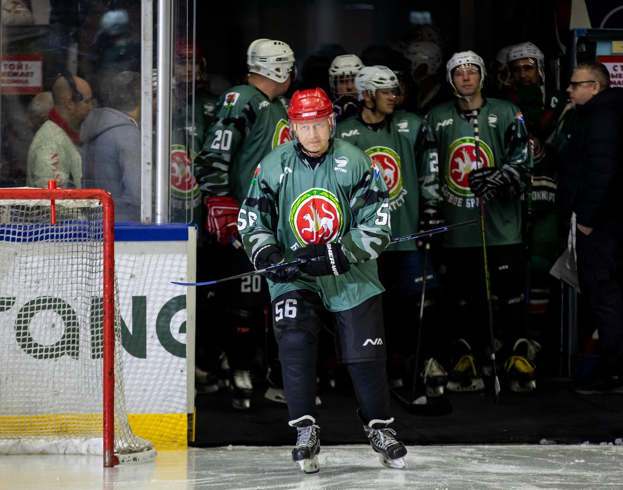 Вместе с участниками СВО и ветеранами боевых действий на лед вышли легенды хоккея Данис Зарипов, Алексей Чупин, Василий Токранов.